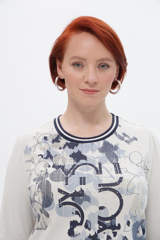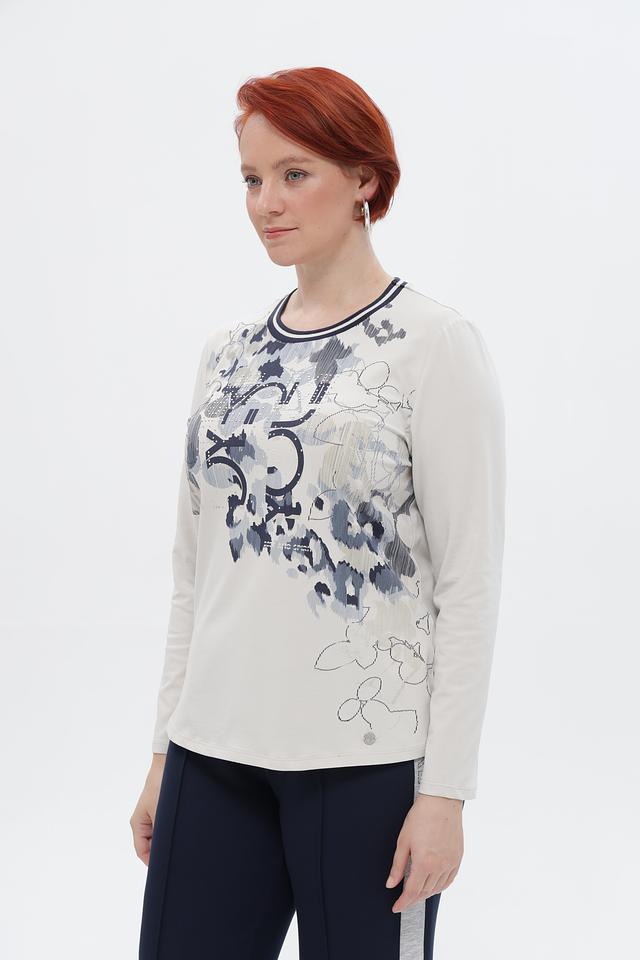 Бежевая блуза Lebek с длинными рукавами и оригинальным принтом в синих тонах станет отличным дополнением к вашему гардеробу. Изготовлена из мягкого хлопка с добавлением эластана для комфорта и удобства. Состав: хлопок 95%, эластан 5%