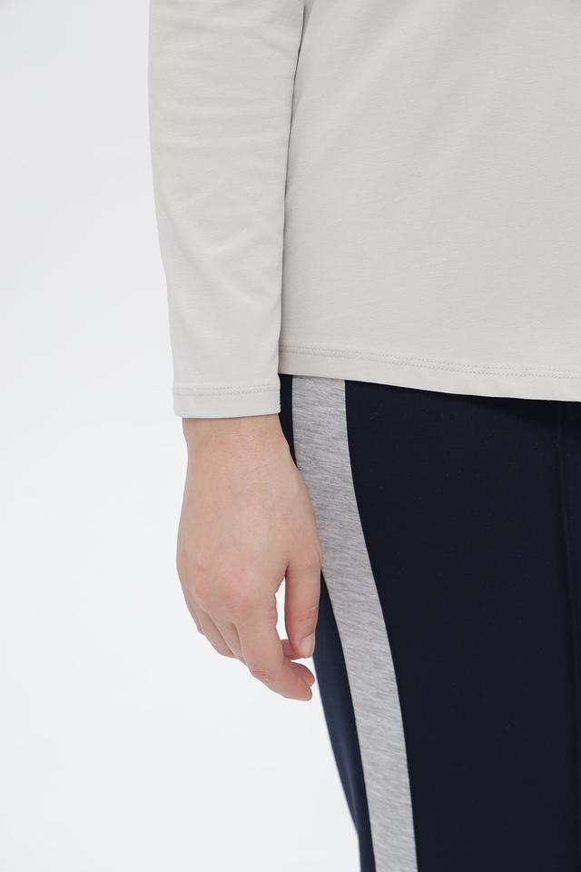 Модель выполнена из высококачественного хлопка (95%) с добавлением эластана (5%), что обеспечивает комфорт в носке, приятные тактильные ощущения и хорошую посадку по фигуре. Блуза отлично сочетается с брюками, юбками и джинсами, позволяя создавать разнообразные образы.