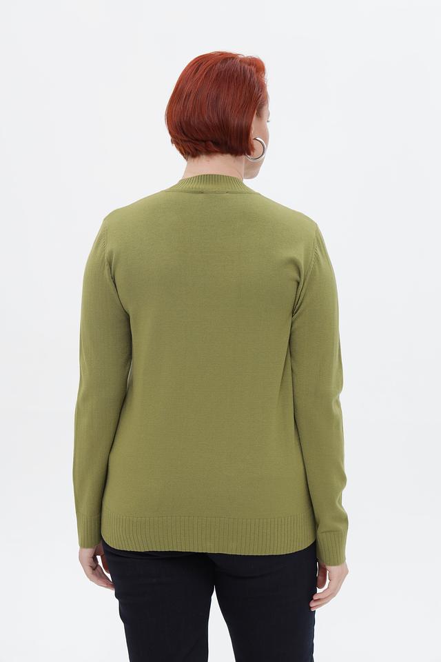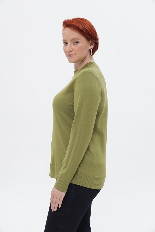 Женский пуловер от бренда Lebek выполнен в спокойном оливковом оттенке. Модель имеет прямой крой и удобную посадку по фигуре.