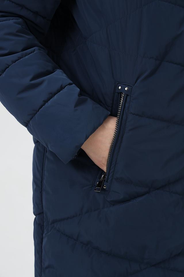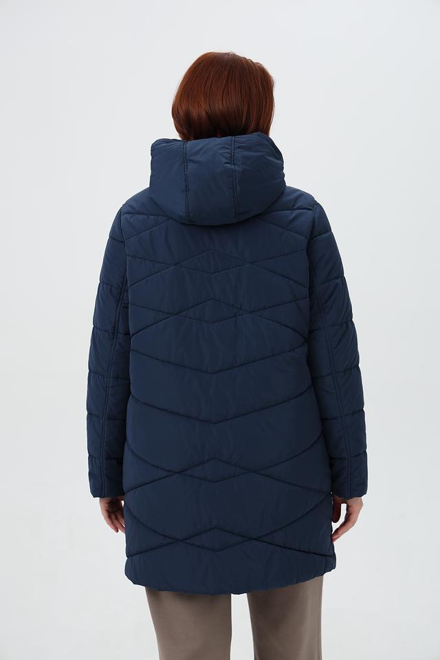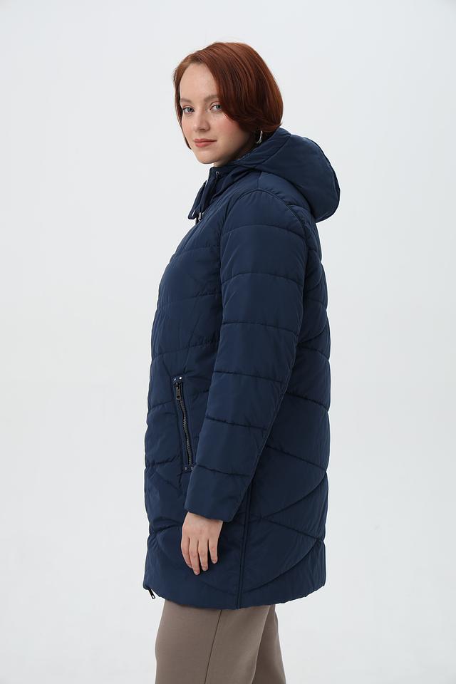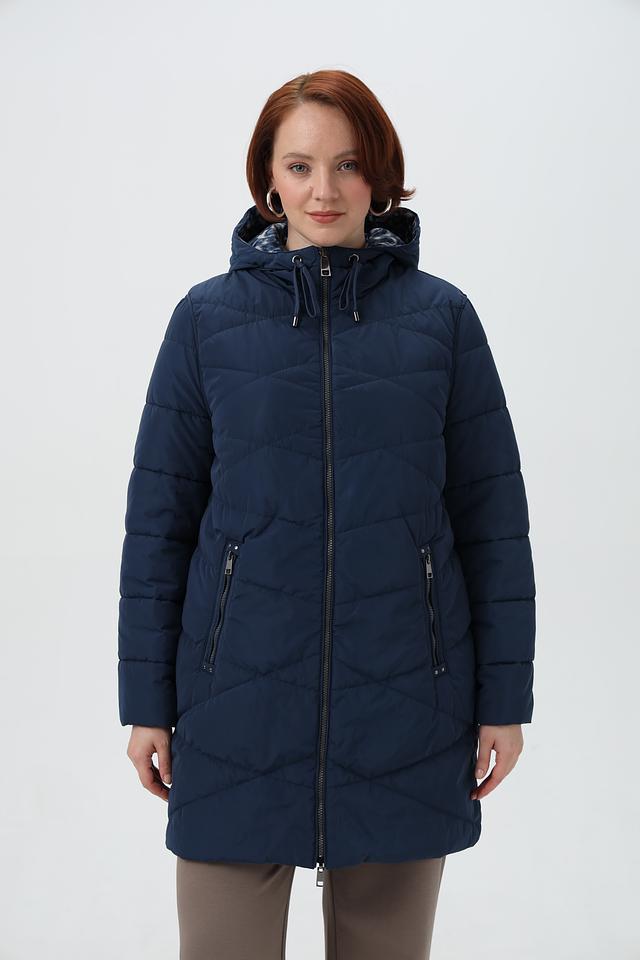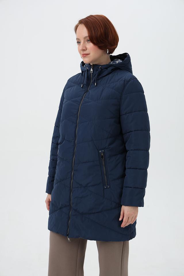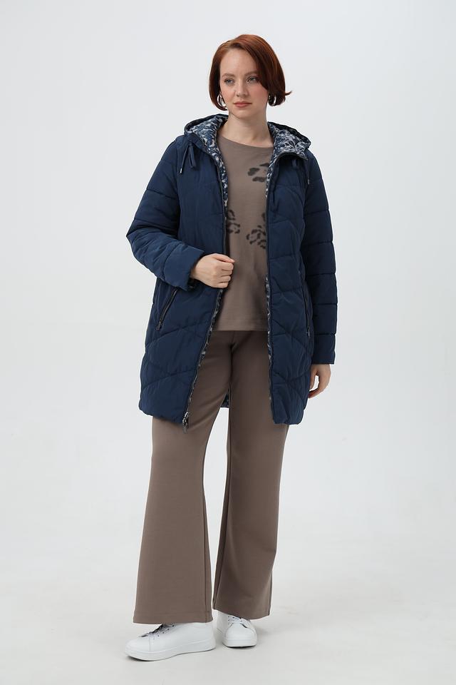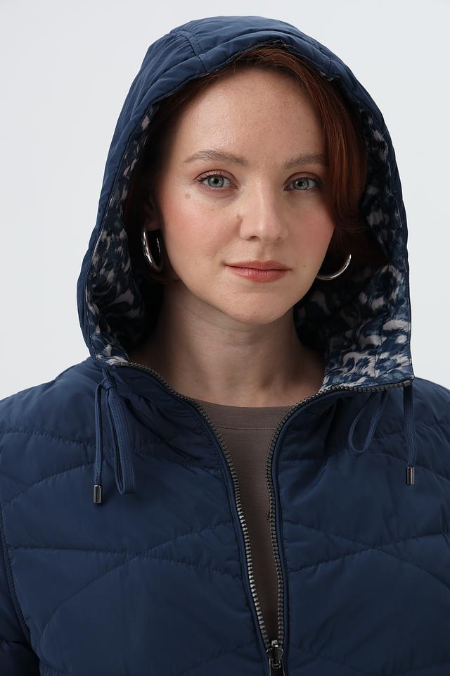 Куртка имеет удлиненный силуэт и стеганую фактуру, что придает ей современный и элегантный вид. Капюшон с принтом добавляет оригинальности образу. Застежка-молния обеспечивает удобство и надежность.