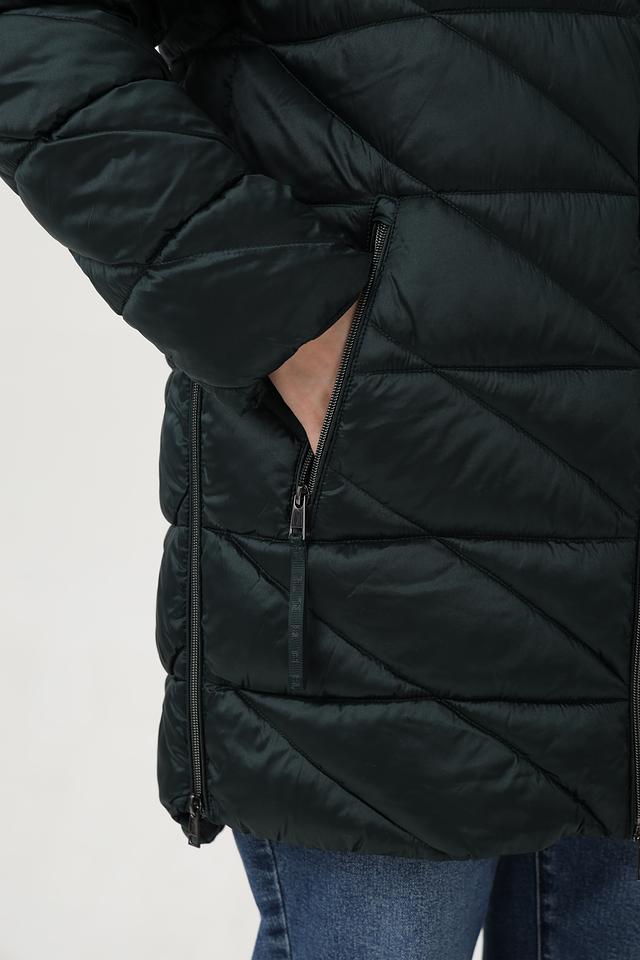 Тёмно-зелёная стеганая куртка Lebek – это стильное и практичное решение для прохладной погоды. Модель имеет удобный капюшон и застегивается на молнию, обеспечивая комфорт и защиту от ветра. Состав: полиэстер 60%, полиамид 40%