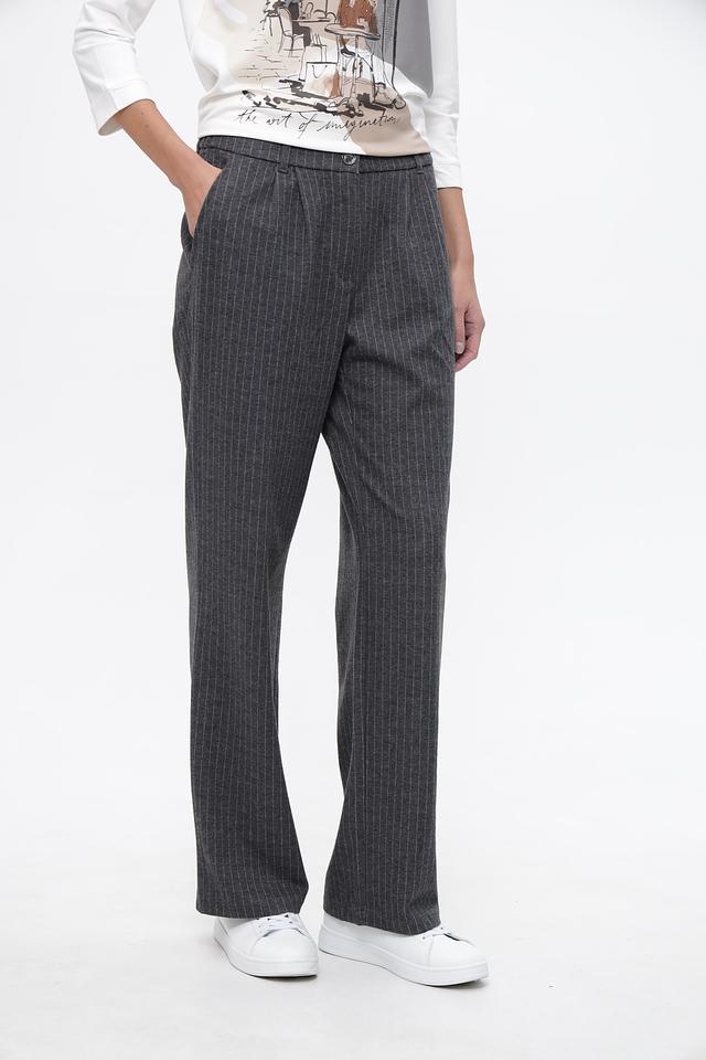 Стильные брюки Barbara Lebek серого цвета с вертикальной полоской станут прекрасным дополнением к вашему гардеробу. Изготовлены из полиэстера с добавлением вискозы и эластана, обеспечивающих комфорт и удобство в носке. Состав: полиэстер 91%, вискоза 7%, эластан 2%