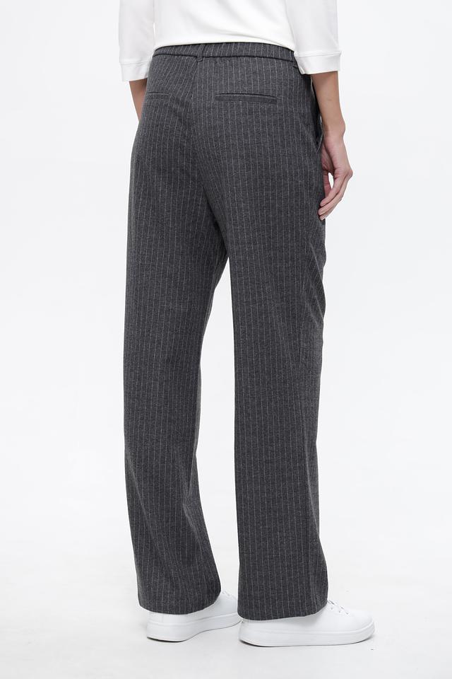 Эта модель отличается вертикальной полоской, которая визуально стройнит силуэт. Брюки имеют классическую посадку, эластичный пояс и боковые карманы.