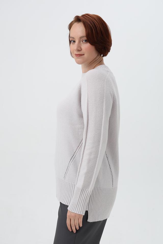 Пуловер выполнен из приятной на ощупь смеси полиакрила, шерсти и полиамида, что гарантирует изделию мягкость, тепло и износостойкость. Ажурная вставка по бокам придает изделию изысканность и женственность.