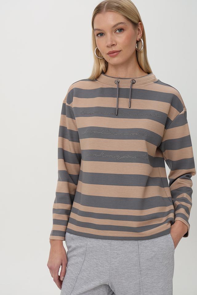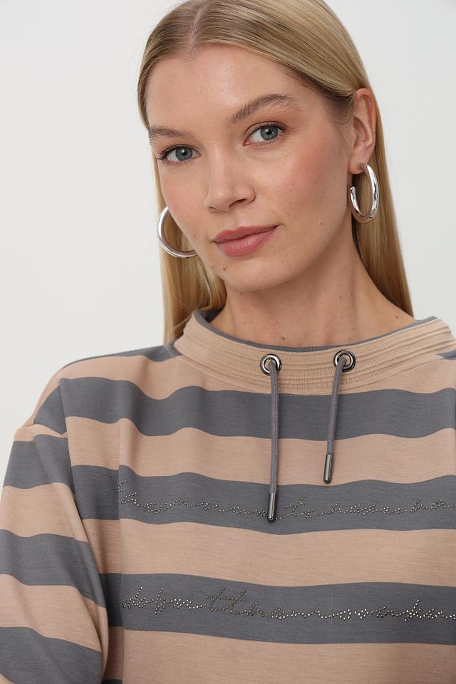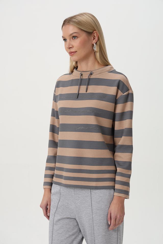 Бежевый пуловер Barbara Lebek с горизонтальной полоской и капюшоном – стильное и комфортное решение для повседневного гардероба. Изготовлен из мягкого трикотажа с добавлением вискозы и полиэстера. Состав: полиэстер 50%, вискоза 45%, эластан 5%