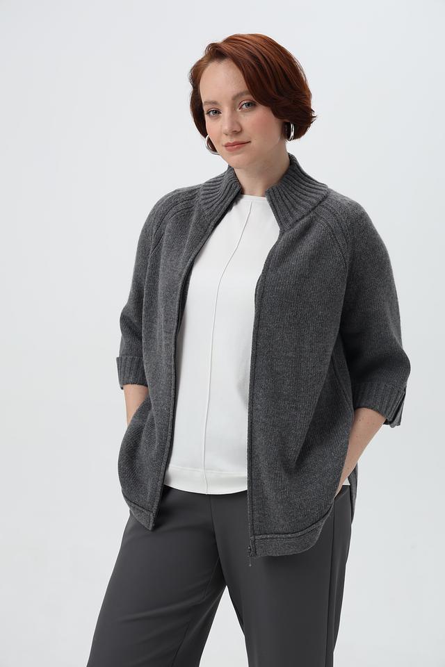 Жакет имеет свободный крой, который обеспечивает комфорт и свободу движений. Текстура вязаного полотна придает изделию уютный вид. Состав ткани включает полиамид, полиэстер, шерсть, хлопок и полиакрил, что обеспечивает приятные тактильные ощущения и практичность в носке.