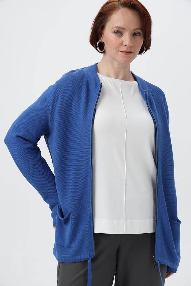 Стильный жакет Barbara Lebek синего цвета выполнен из мягкого вязаного полотна с добавлением полиакрила. Застежка — молния. Удобная модель на каждый день. Состав: хлопок 50%, полиакрил 50%