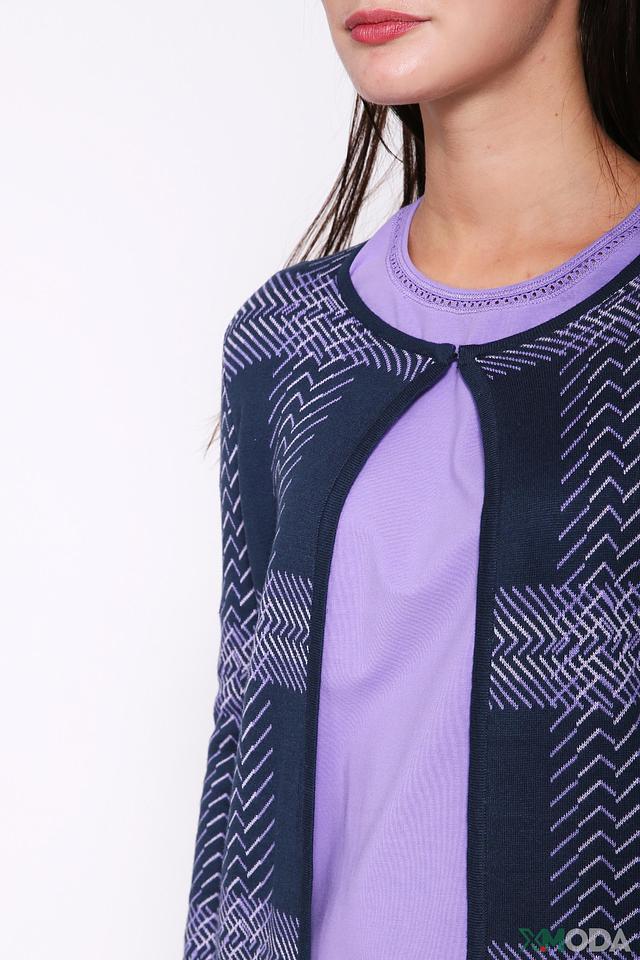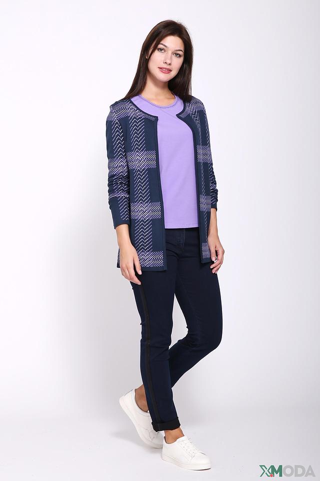 Жакет имеет прямой крой и длину до бедра. Он застегивается на пуговицы, что позволяет регулировать силуэт. Рукава жакета – длинные. Модель выполнена из мягкого и приятного к телу трикотажа, в составе которого 50% хлопка и 50% акрила. Такое сочетание материалов обеспечивает комфорт, удобство и практичность в носке.