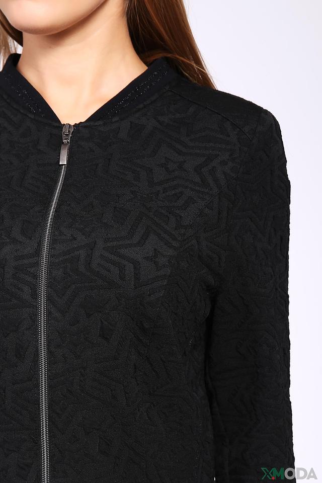 Чёрный жакет от Lebek с геометрическим узором и застёжкой на молнии. Модель выполнена из полиэстера с добавлением вискозы и эластана, что обеспечивает комфорт и хорошую посадку по фигуре. Состав: полиэстер 70%, вискоза 28%, эластан 2%