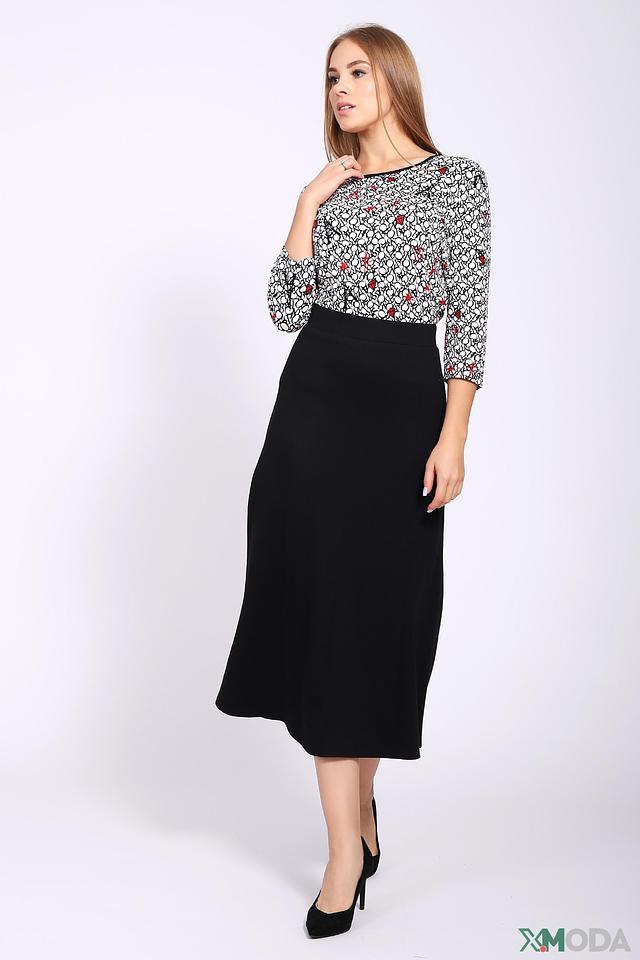 Юбка имеет длину миди и прямой крой, что делает её универсальной и подходящей для разных типов фигуры. Плотная ткань обеспечивает хорошую посадку и комфорт при носке.