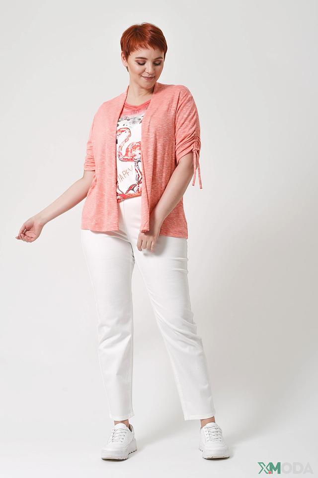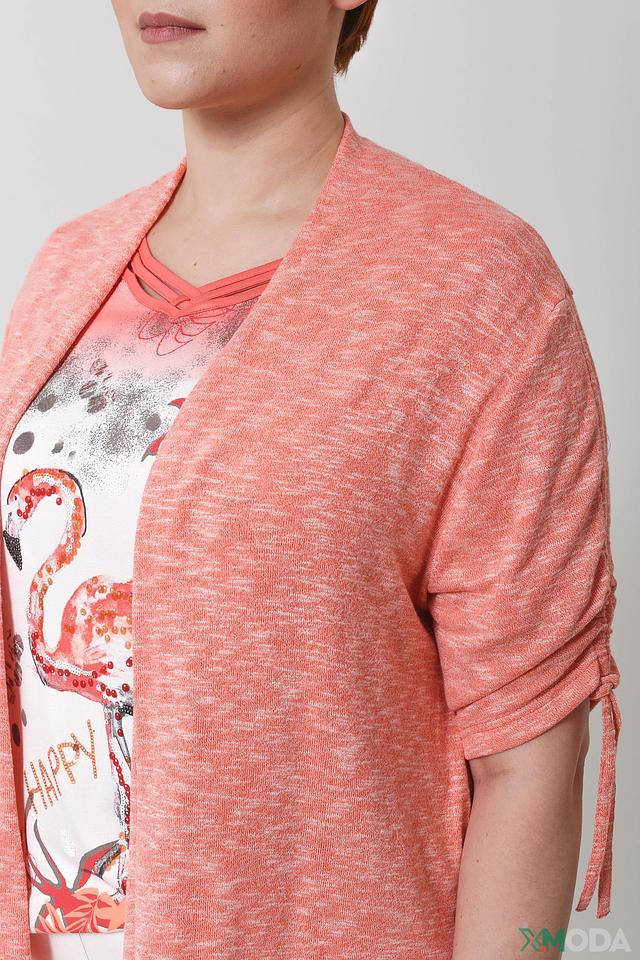 Жакет имеет свободный крой, который обеспечивает комфорт в носке. Рукава 3/4 с манжетами на резинке добавляют модели изюминку. Отсутствие застежек делает жакет легким и непринужденным.