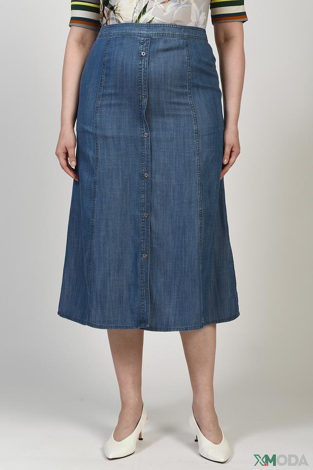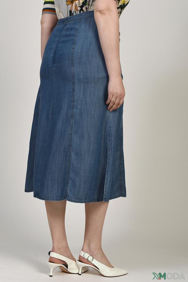 Юбка имеет длину миди и прямую посадку, что делает ее универсальной для разных типов фигур. Застежка на пуговицы по всей длине юбки позволяет регулировать степень облегания и создавать различные образы.