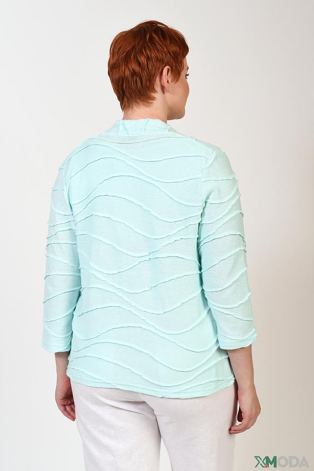 Жакет имеет короткий рукав и свободный крой, что обеспечивает комфорт в носке. Оригинальным элементом дизайна являются воланы, расположенные по всей поверхности изделия, которые добавляют ему изысканности и женственности.