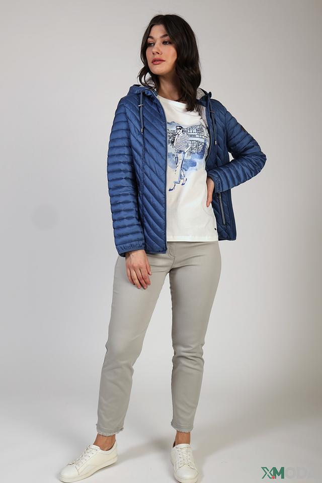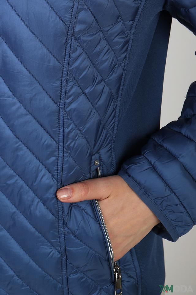 Куртка имеет стеганую фактуру, которая придает ей современный вид. Капюшон обеспечивает дополнительную защиту от ветра и дождя. Застежка-молния позволяет легко надевать и снимать куртку.