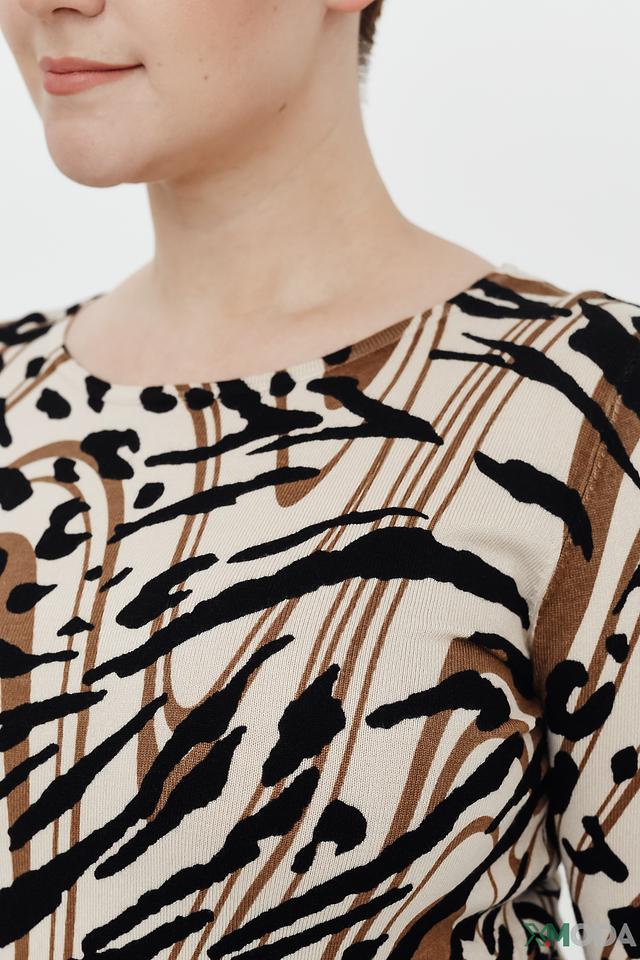 Женский пуловер Lebek бежевого цвета с оригинальным принтом "зебра" станет стильным дополнением к вашему гардеробу. Модель выполнена из мягкой и приятной к телу вискозы, обеспечивающей комфорт в носке. Состав: вискоза 70%, полиамид 30%