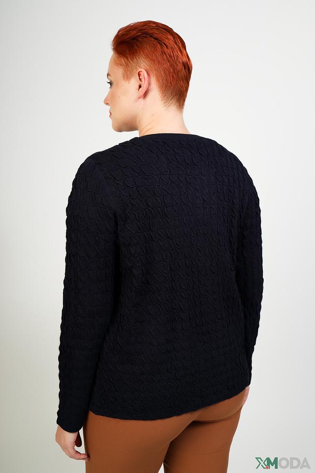 Жакет Lebek чёрного цвета с оригинальной текстурной вязкой станет стильным дополнением к вашему гардеробу. Модель имеет классический крой и удобную длину, идеально подходит для создания повседневных образов. Состав: вискоза 77%, полиамид 23%