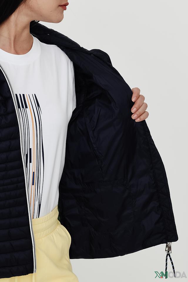 Куртка имеет стеганую фактуру, которая придает ей современный и стильный вид. Капюшон обеспечивает дополнительную защиту от ветра и дождя. Застежка-молния позволяет легко надевать и снимать куртку.