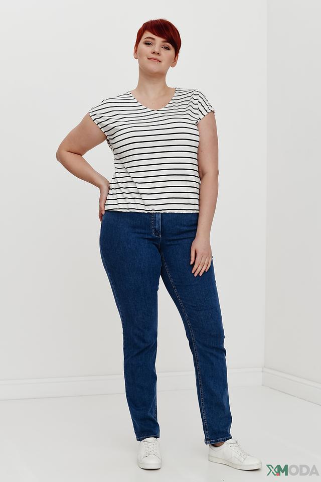 Женская футболка Lebek выполнена в классическую бело-синюю полоску. Модель с V-образным вырезом и короткими рукавами станет отличным дополнением к вашему гардеробу. Изготовлена из мягкой и приятной к телу вискозы с добавлением эластана. Состав: вискоза 92%, эластан 8%