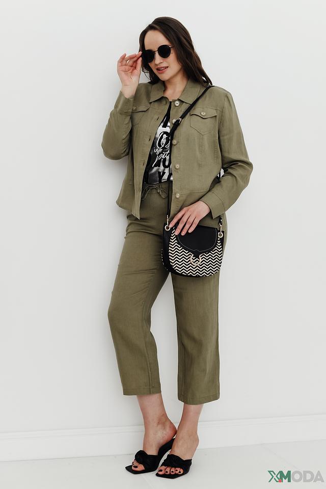 Женские брюки Lebek цвета хаки — это стильное и комфортное решение для повседневного образа. Модель выполнена из натурального льна, имеет удобный эластичный пояс и свободный крой. Состав: лен 100%