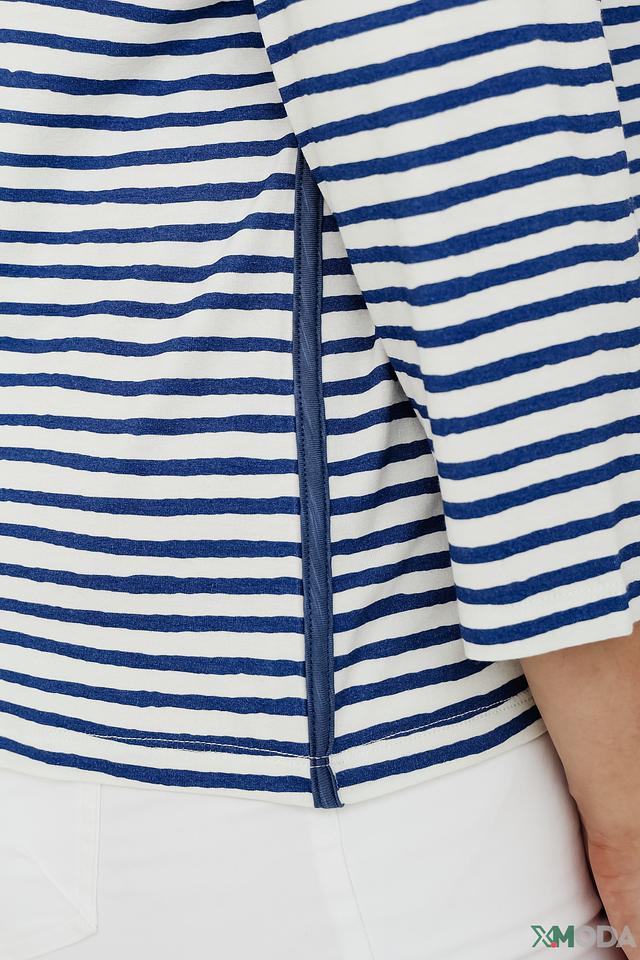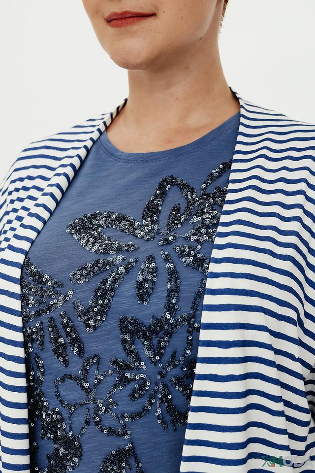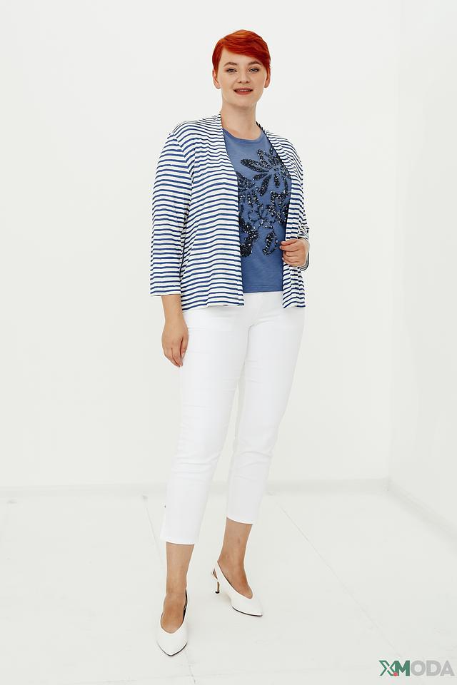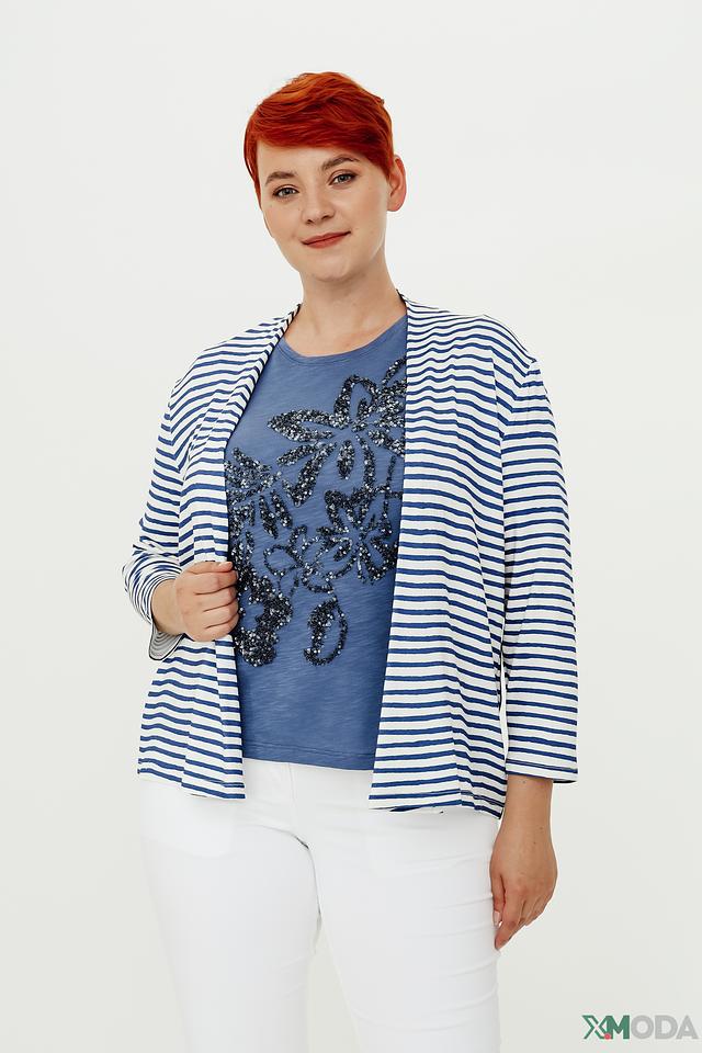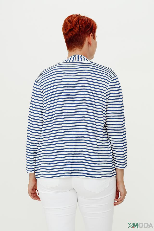 Женский кардиган Lebek синего и белого цвета в классическую полоску. Модель с рукавом 3/4 и открытым силуэтом станет отличным дополнением к вашему образу. Состав: вискоза 95%, эластан 5%