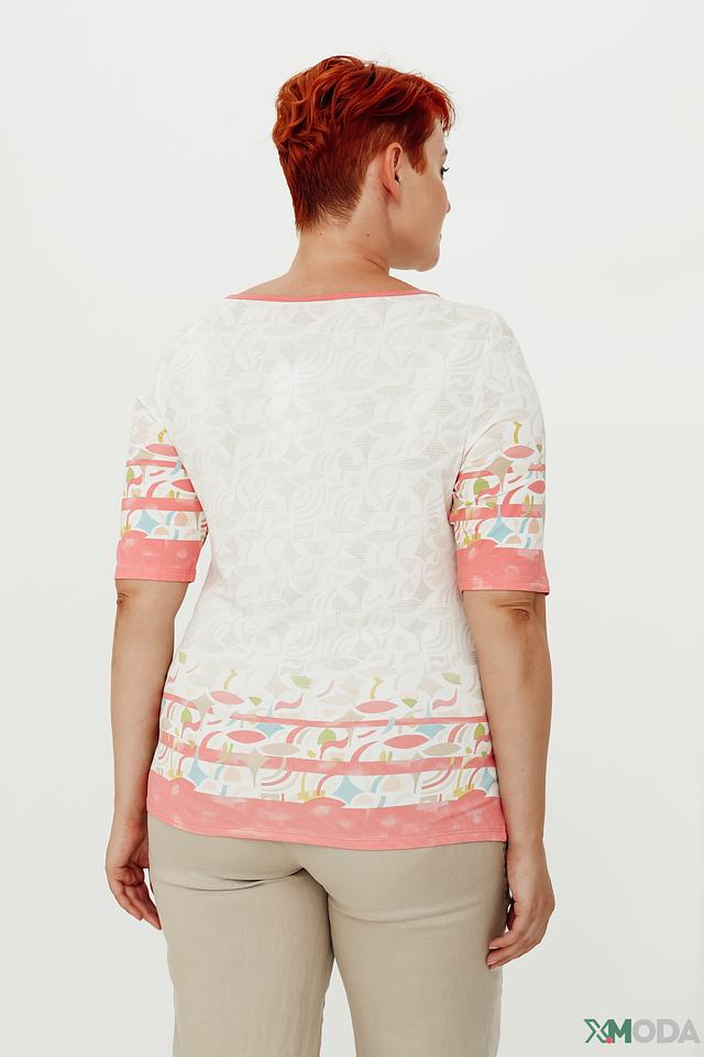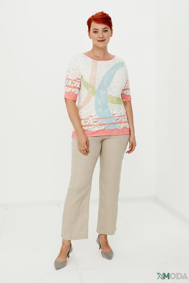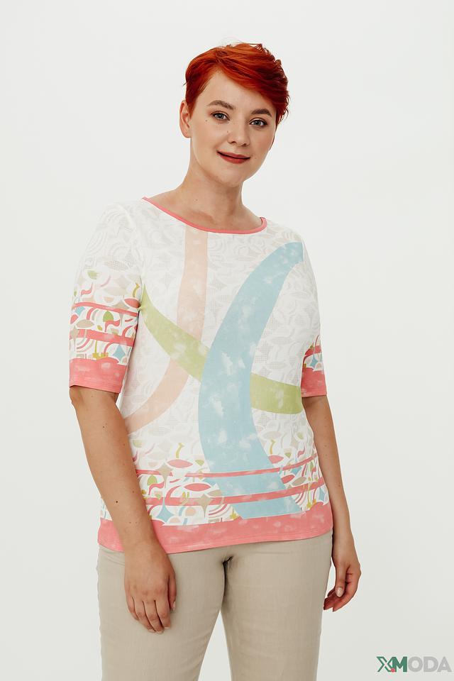 Женская футболка Lebek светло-бежевого цвета с оригинальным абстрактным принтом. Модель выполнена из мягкой вискозы с добавлением эластана, обеспечивающего комфортную посадку. Идеальный выбор для создания стильного и легкого образа. Состав: вискоза 95%, эластан 5%
