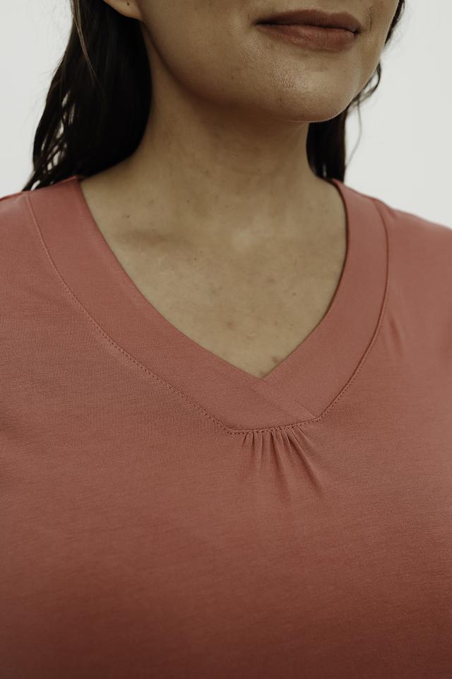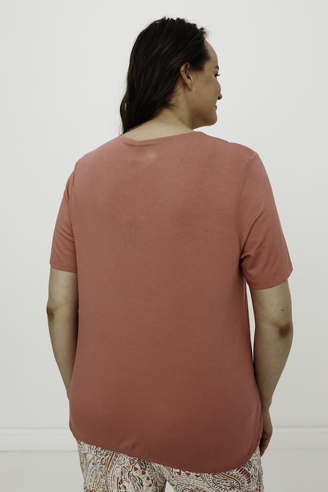 Состав ткани: 95% вискоза, 5% эластан. Футболка приятна к телу, хорошо дышит и не требует особого ухода. Рекомендуется деликатная стирка.