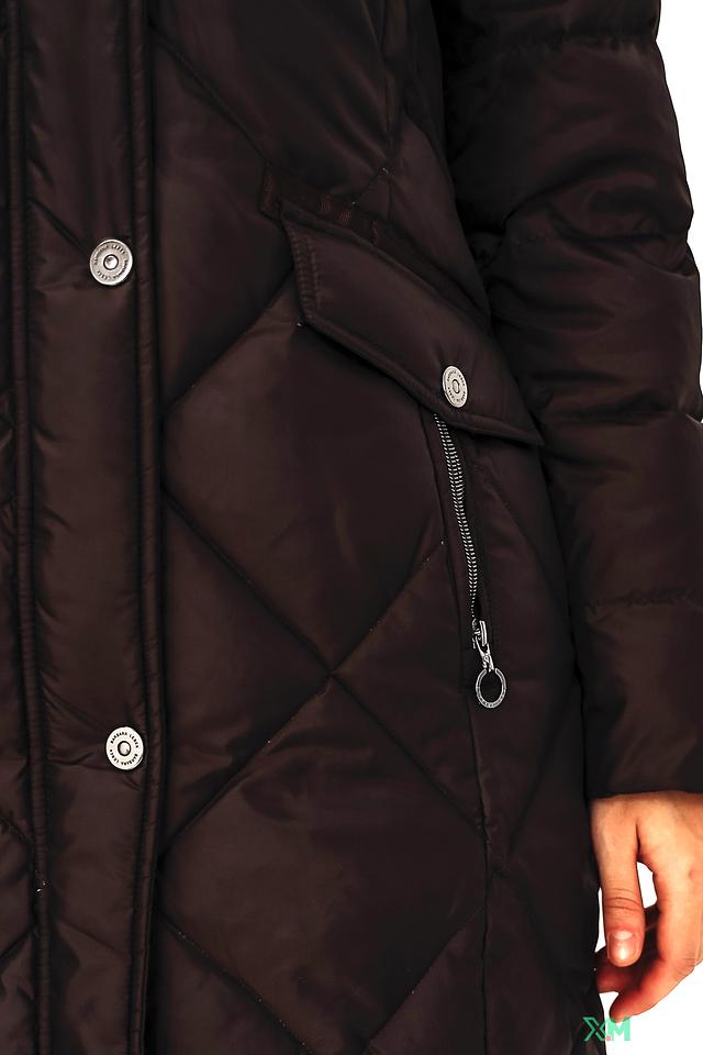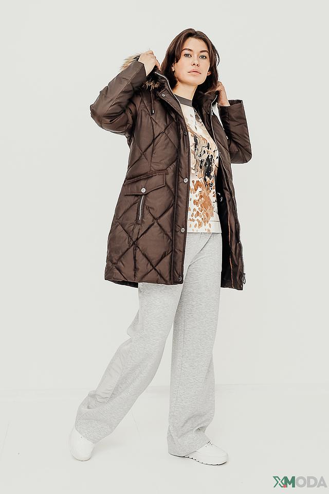 Куртка имеет стеганую фактуру, которая придает ей современный вид. Капюшон с отделкой из искусственного меха защитит от ветра и холода. Застежка-молния и кнопки обеспечивают надежную фиксацию.