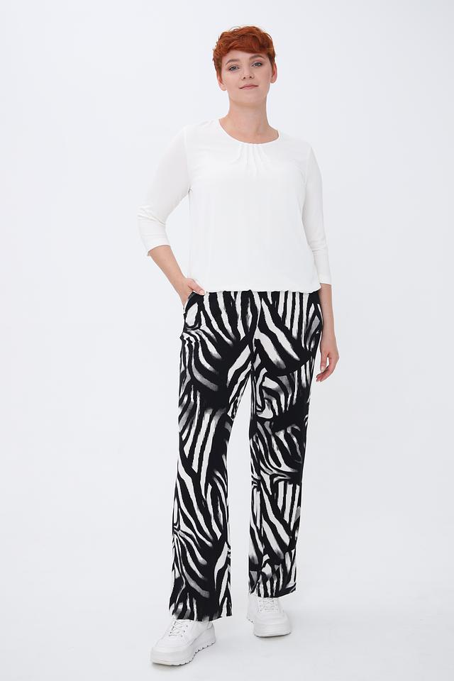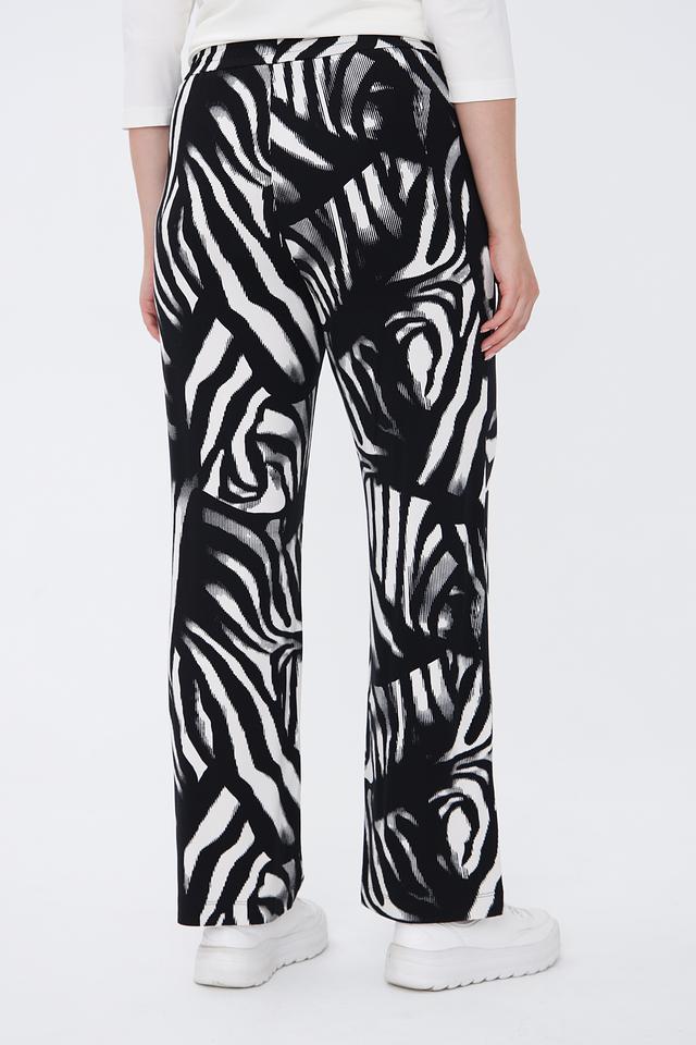 Женские брюки Lecomte чёрно-белого цвета с оригинальным принтом "зебра" станут ярким акцентом вашего образа. Модель выполнена из мягкой вискозы с добавлением эластана для комфорта и свободы движений. Состав: вискоза 96%, эластан 4%