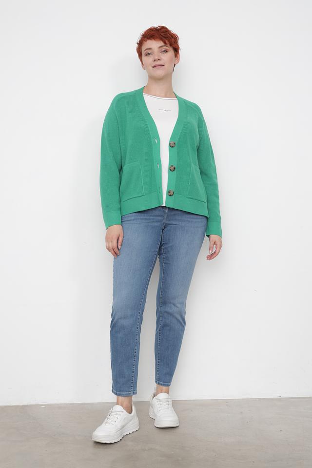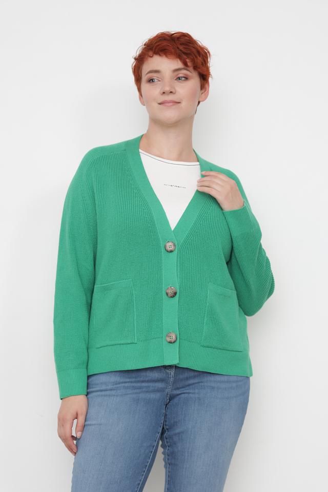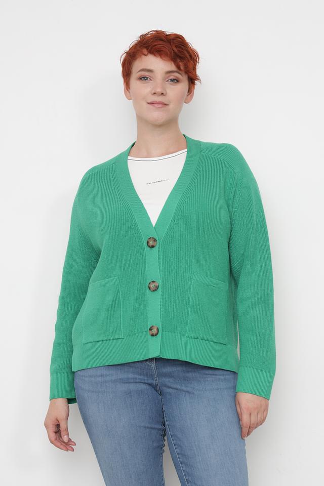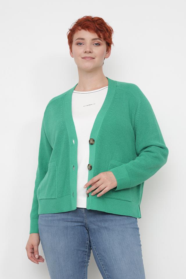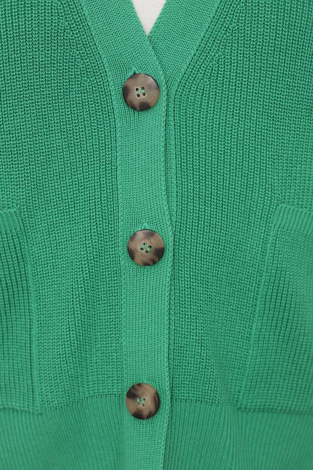 Зелёный кардиган Lecomte – это удобная и стильная модель на пуговицах. Изготовлен из мягкого трикотажа, имеет V-образный вырез и боковые карманы. Состав: хлопок 50%, полиакрил 50%