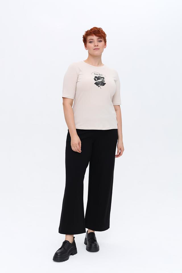 Основным акцентом футболки является стильный принт "lucky" с изображением четырехлистного клевера, выполненный в графитовых тонах. Принт добавляет образу оригинальности и позитивного настроения.