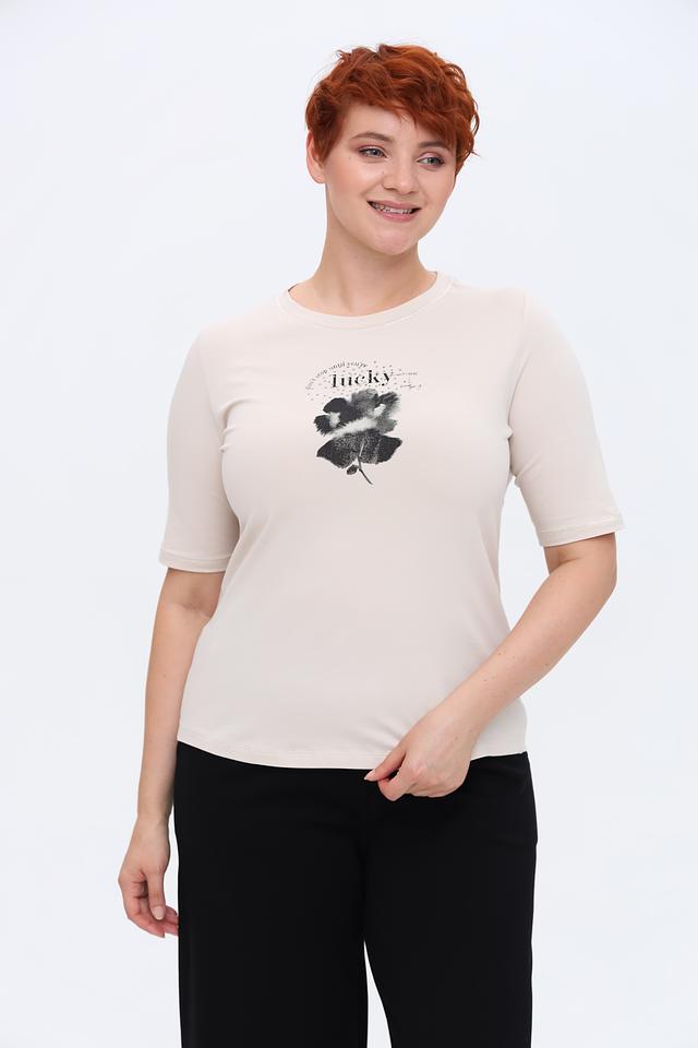 Бежевая футболка Lecomte с оригинальным принтом "lucky" станет отличным дополнением к вашему гардеробу. Изготовлена из мягкого хлопка с добавлением эластана для комфорта и хорошей посадки. Состав: хлопок 95%, эластан 5%