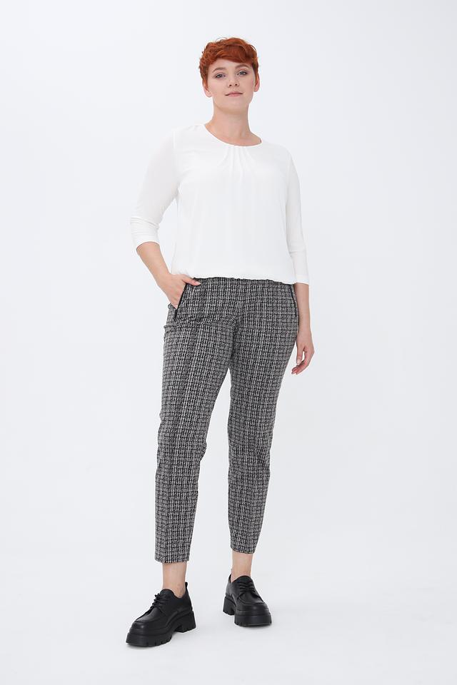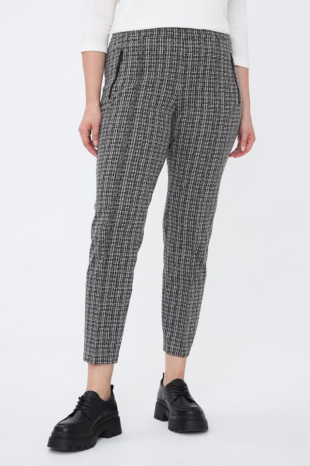 Женские брюки Lecomte чёрно-белого цвета с клетчатым принтом — стильное и комфортное решение для повседневного гардероба. Модель выполнена из мягкой ткани с добавлением вискозы и эластана, обеспечивающих удобную посадку и свободу движений. Состав: полиэстер 68%, вискоза 30%, эластан 2%