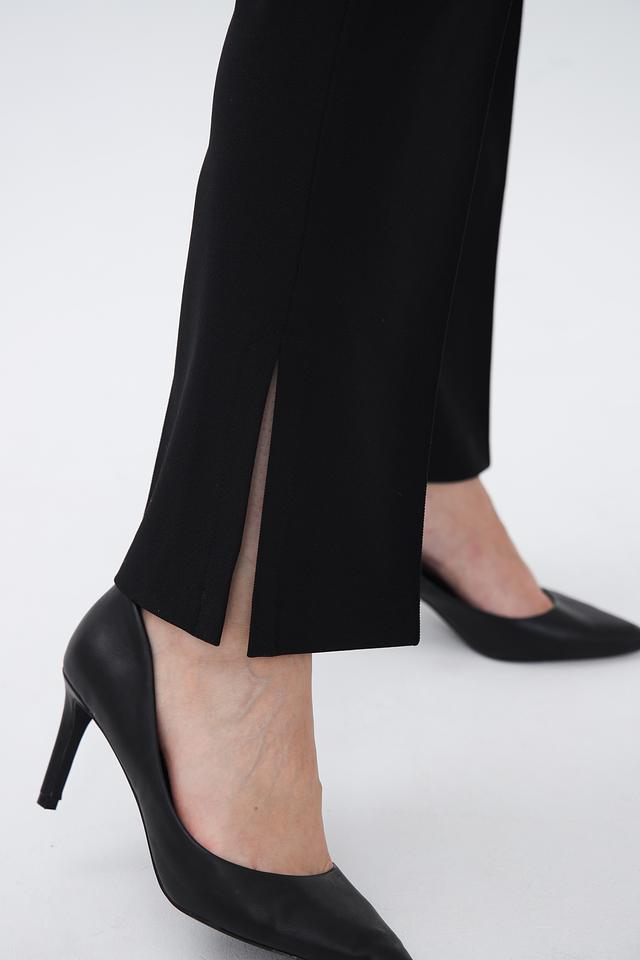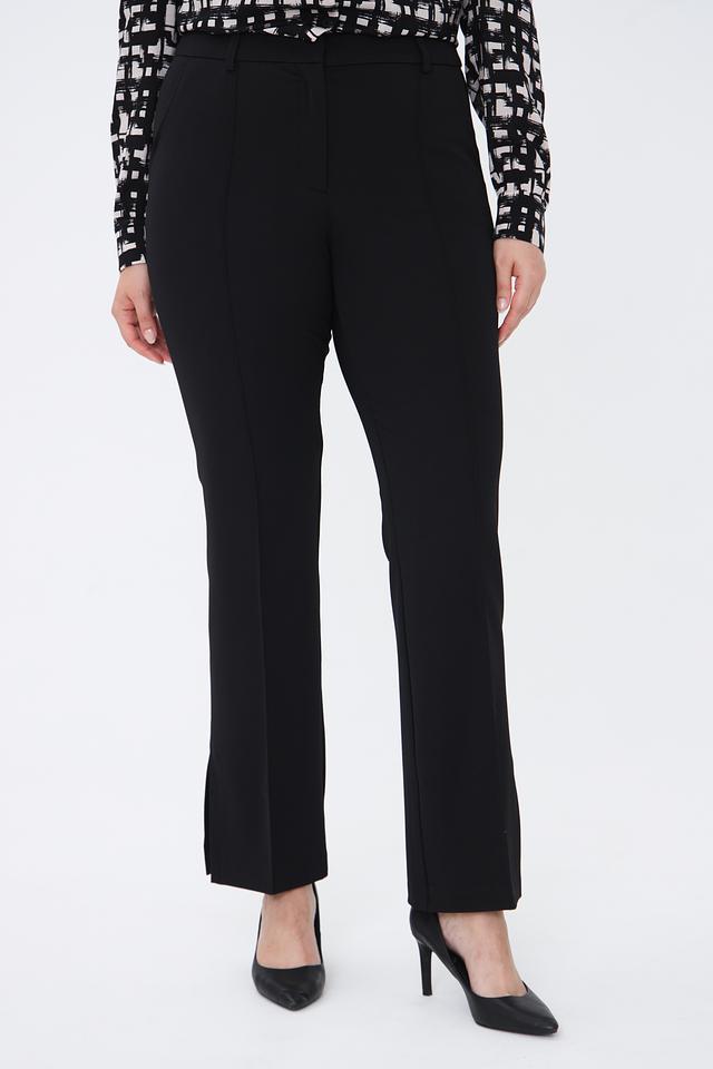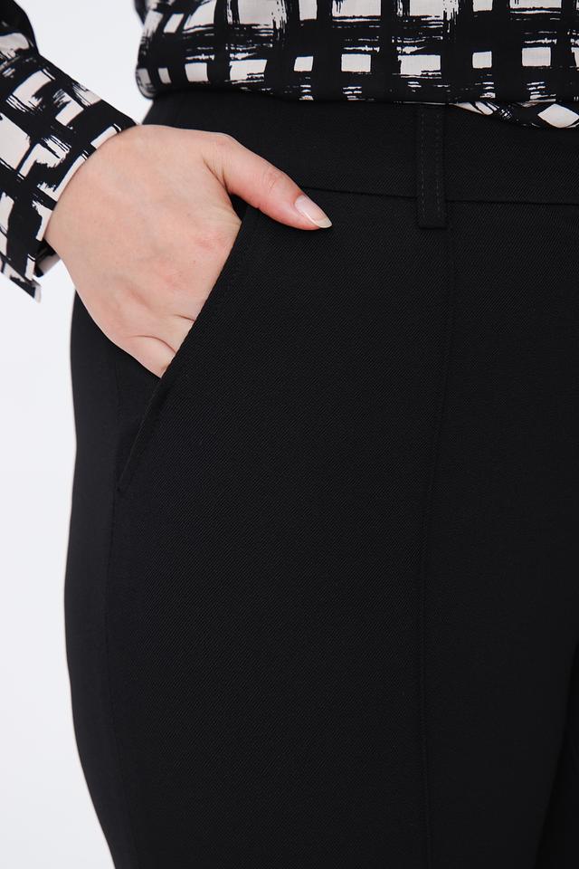 Брюки имеют прямой крой и стандартную посадку по талии, что обеспечивает комфортную и уверенную посадку. Ткань, состоящая из 86% полиэстера и 14% эластана, приятна на ощупь, хорошо держит форму и практически не мнется.