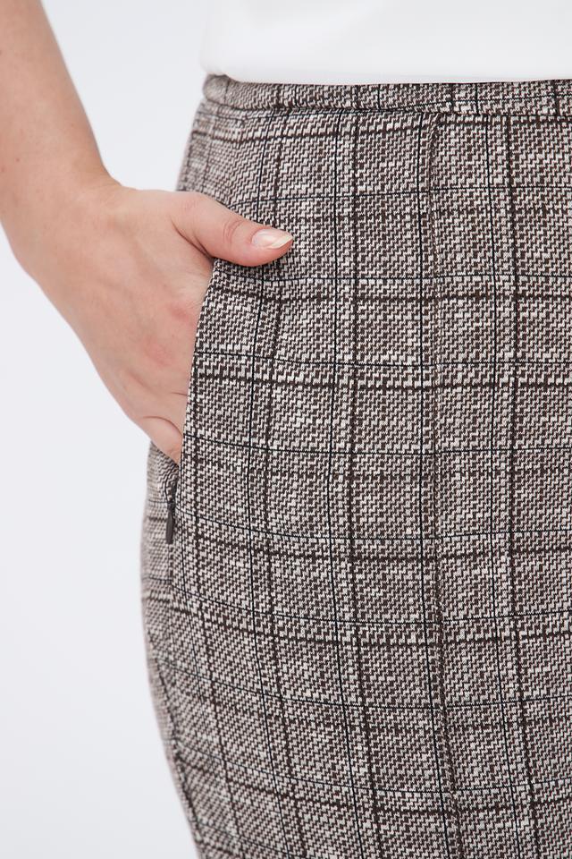 Женские брюки Lecomte серого цвета в классическую клетку – стильное и комфортное решение для повседневного гардероба. Модель выполнена из мягкой ткани с добавлением вискозы и эластана, обеспечивающих удобную посадку и свободу движений. Состав: полиэстер 39%, хлопок 34%, вискоза 21%, полиамид 5%, эластан 1%