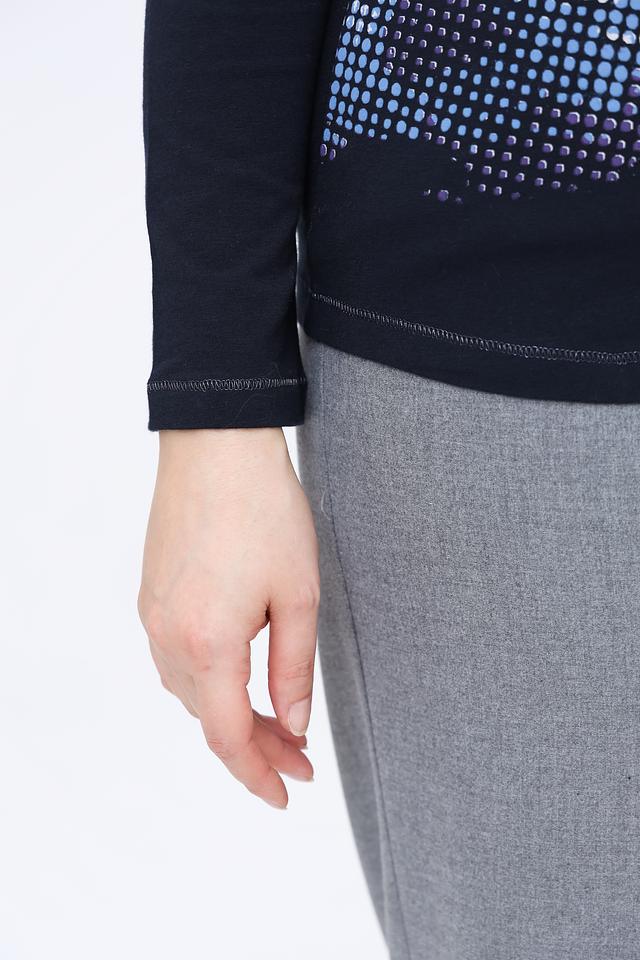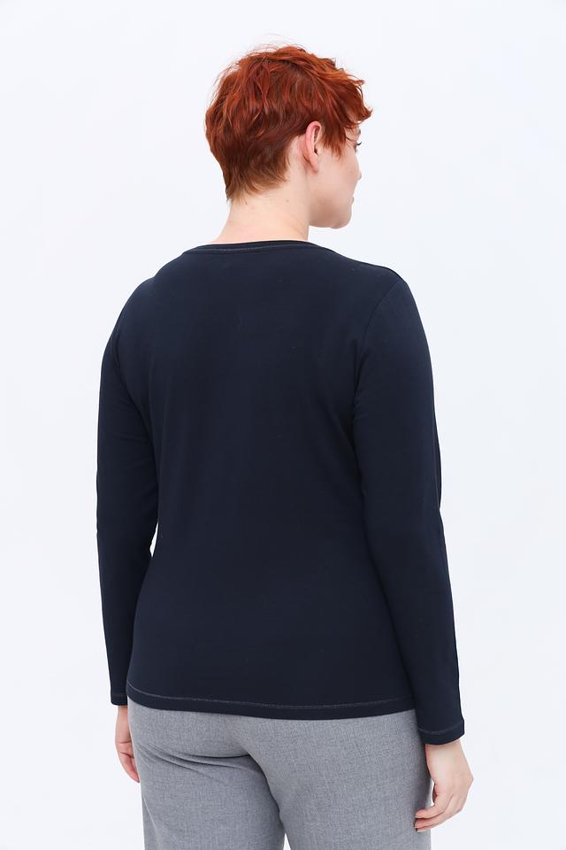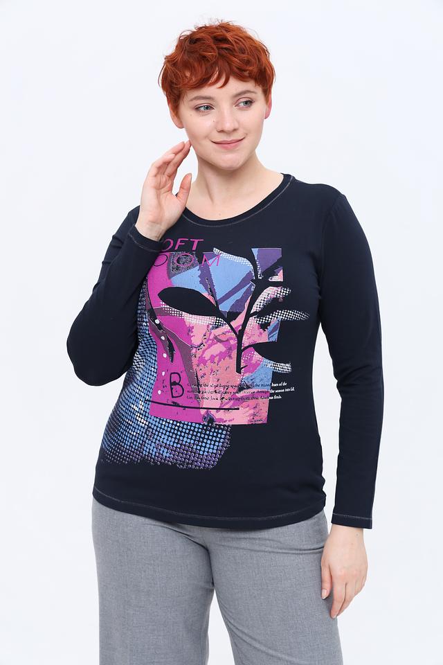 Женский лонгслив Lecomte темно-синего цвета с ярким цветочным принтом и округлым вырезом горловины. Изготовлен из мягкого хлопка с добавлением эластана для комфорта и свободы движений. Состав: хлопок 95%, эластан 5%