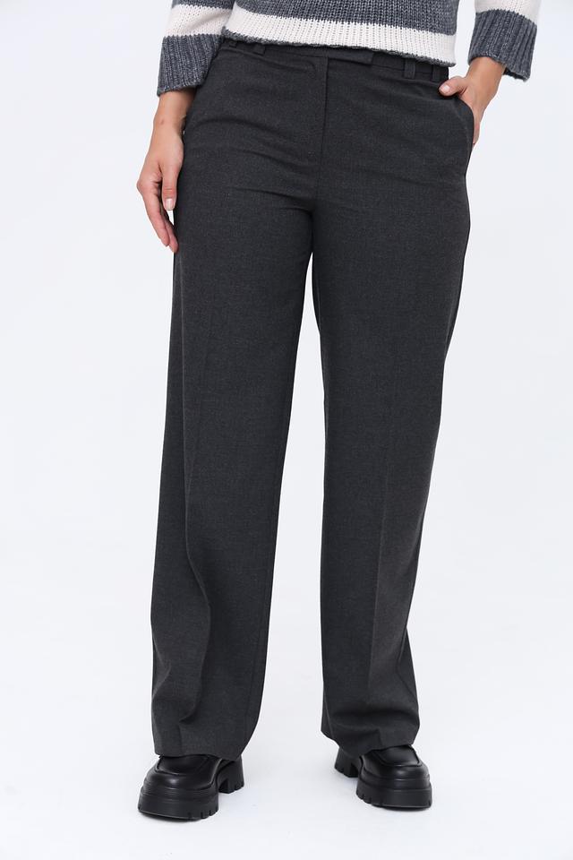 Брюки имеют прямой крой и стандартную посадку по талии. Застежка на молнию и пуговицу обеспечивает надежную фиксацию. По бокам расположены функциональные карманы.