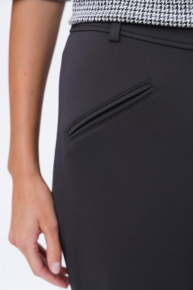 Дизайн брюк дополнен боковыми карманами и задними карманами с клапанами. Застежка – молния и пуговица. Данная модель станет отличным выбором для создания стильного и практичного образа на каждый день.