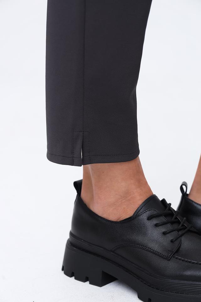 Брюки имеют прямой крой, который подчеркивает фигуру и обеспечивает комфортную посадку. Материал – сочетание полиамида (95%) и эластана (5%), что гарантирует износостойкость, приятные тактильные ощущения и небольшую эластичность.