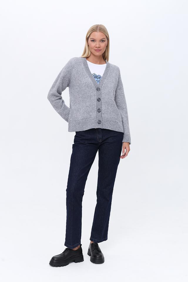 Дизайн кардигана лаконичный и универсальный, что позволяет сочетать его с различными предметами одежды. Он прекрасно подойдет для создания повседневных образов, а также для более элегантных стилей. Плотная вязка придает изделию форму и долговечность.