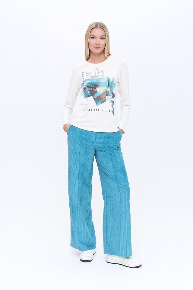 Брюки имеют классический крой с высокой посадкой, что обеспечивает удобную посадку и подчеркивает достоинства фигуры. Цвет – насыщенный бирюзовый, который легко сочетается с различными элементами одежды.
