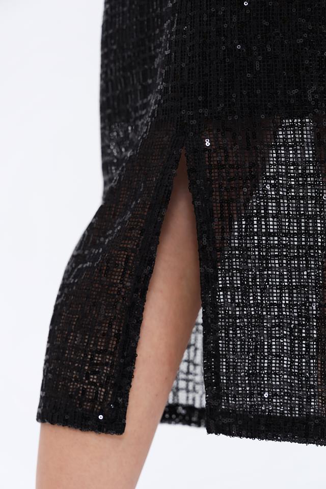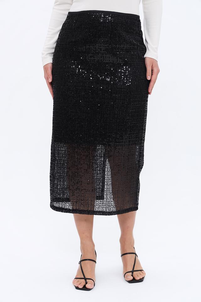 Черная юбка Lecomte, выполненная из полиэстера с пайетками, станет эффектным дополнением к вашему образу. Прямой крой и длина миди подчеркнут фигуру и подойдут для создания вечерних и праздничных луков. Состав: полиэстер 100%