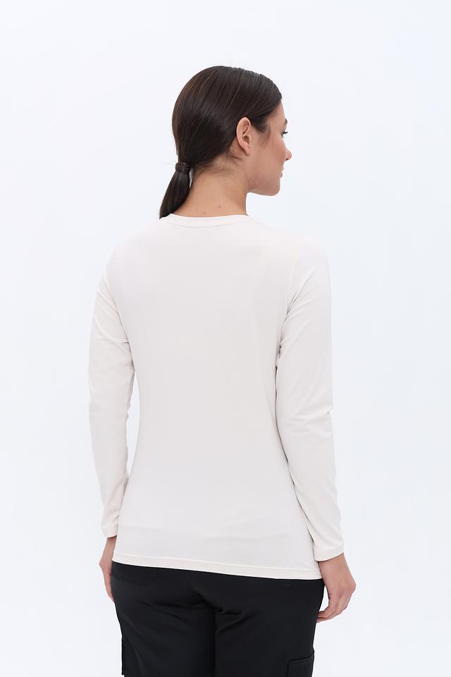 Женский лонгслив Lecomte кремового цвета с оригинальным графичным принтом. Изготовлен из мягкого хлопка с добавлением эластана для комфорта и свободы движений. Идеально подходит для создания повседневных образов. Состав: хлопок 95%, эластан 5%