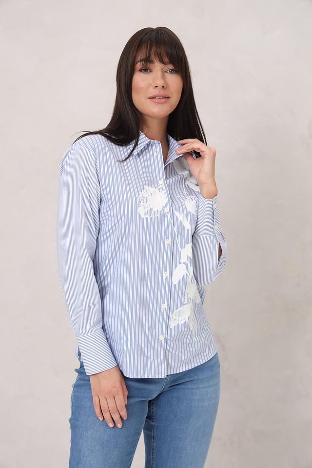 Голубая рубашка Lecomte с длинным рукавом, украшенная цветочной вышивкой. Изготовлена из хлопка с добавлением полиамида и эластана для комфорта и долговечности. Стильный и универсальный вариант для создания повседневных образов. Состав: хлопок 72%, полиамид 25%, эластан 3%