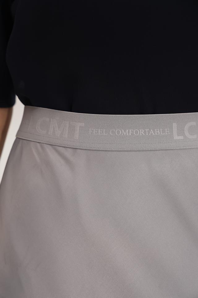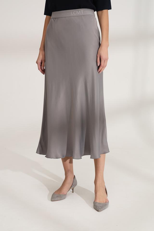 Стильная юбка Lecomte серого цвета выполнена из гладкой атласной ткани. Модель имеет эластичный пояс с логотипом бренда и свободный крой, обеспечивающий комфорт и свободу движений. Состав: вискоза 100%