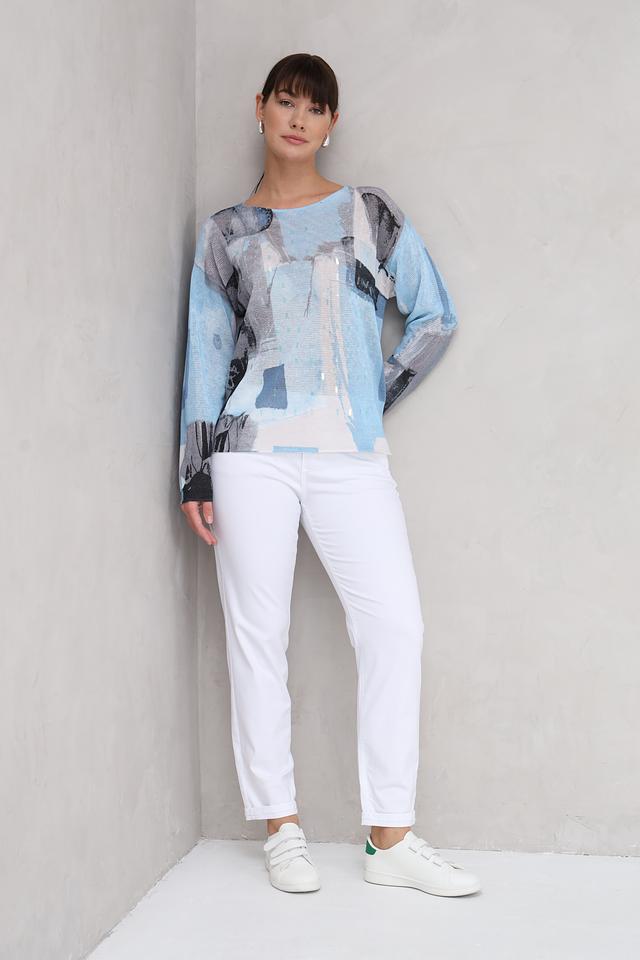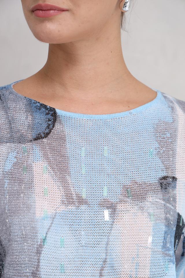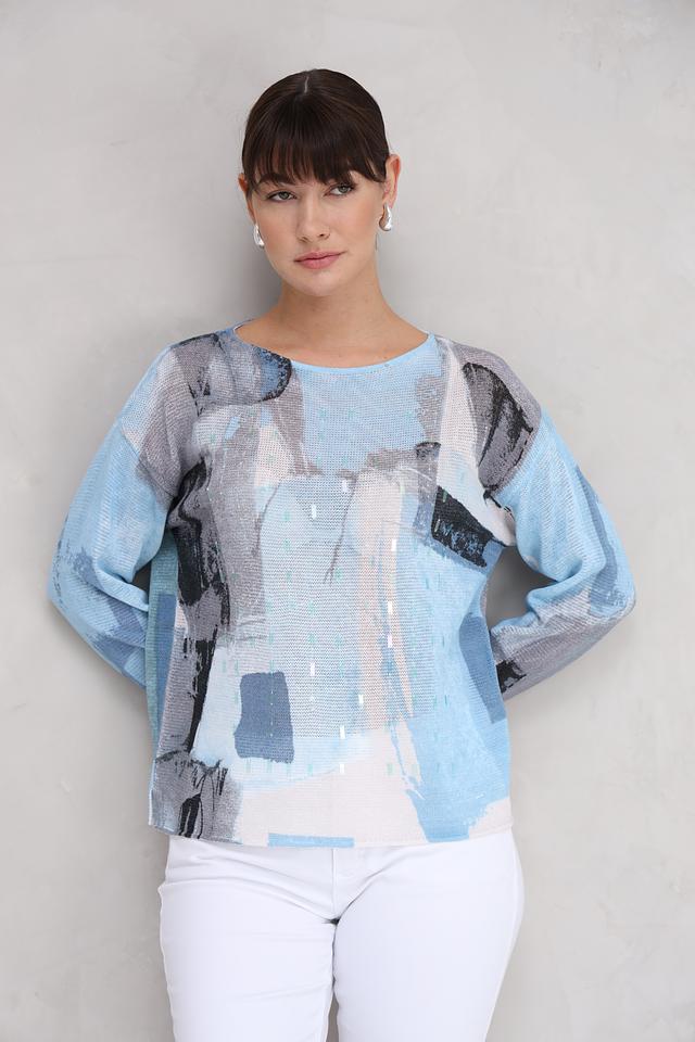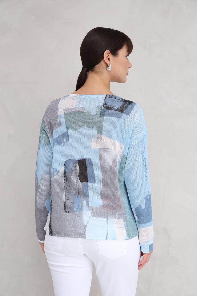 Женский пуловер Lecomte светло-голубого цвета с оригинальным абстрактным принтом. Изготовлен из мягкого и приятного к телу сочетания хлопка, льна и полиамида, обеспечивающего комфорт и долговечность. Состав: хлопок 61%, лен 21%, полиамид 18%
