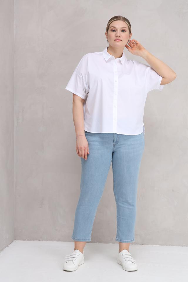 Блуза застегивается на ряд пуговиц. Она прекрасно сочетается с джинсами, брюками или юбками, создавая стильный и комфортный образ. Состав ткани: 97% хлопок, 3% эластан.