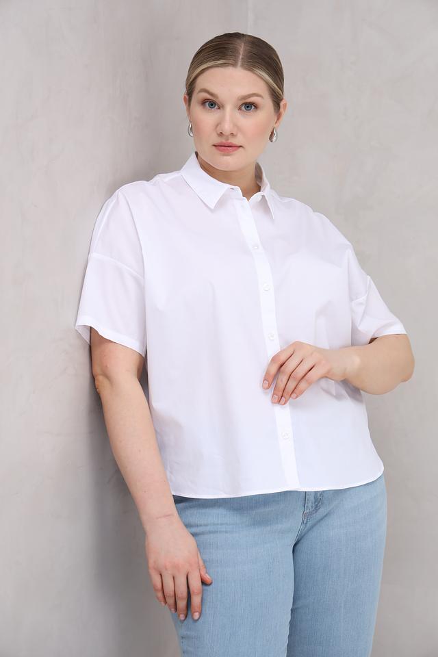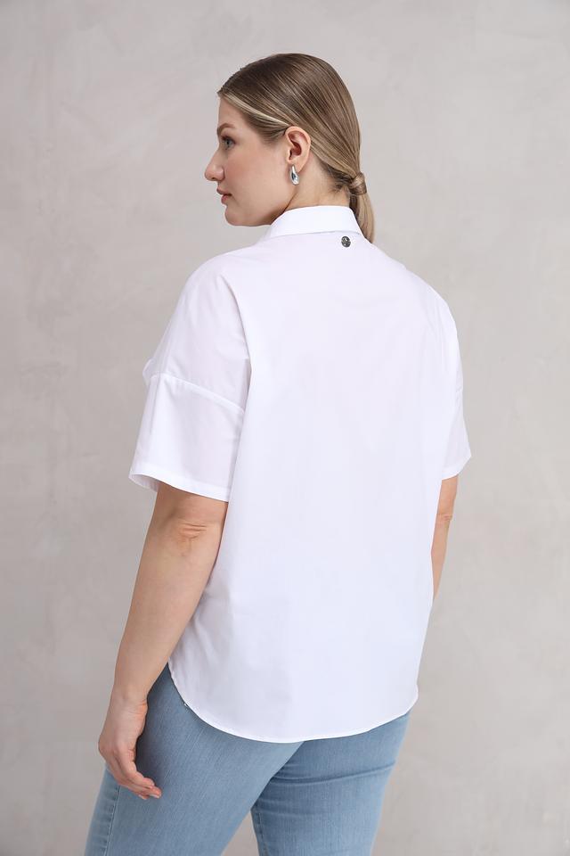Классический крой с короткими рукавами делает эту блузу универсальной и подходящей для различных случаев. Воротник рубашечного типа добавляет образу элегантности.