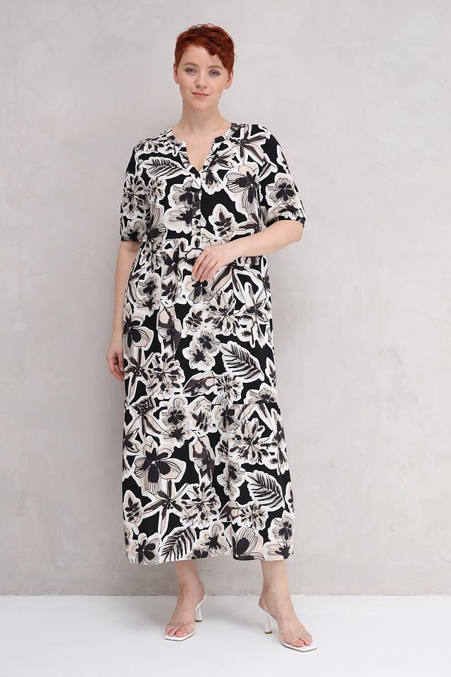 Изготовленное из 100% вискозы, платье отличается мягкостью, приятностью на ощупь и хорошей воздухопроницаемостью. Оно идеально подходит для тёплой погоды и обеспечит комфорт в течение всего дня. Свободный крой не сковывает движений, а длина миди делает его универсальным для различных случаев.