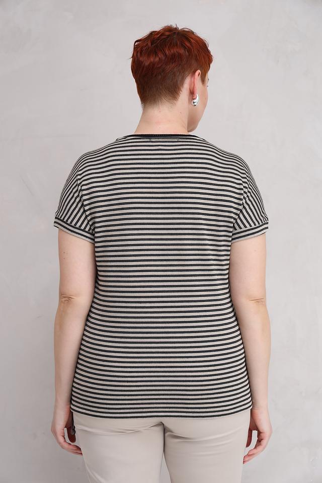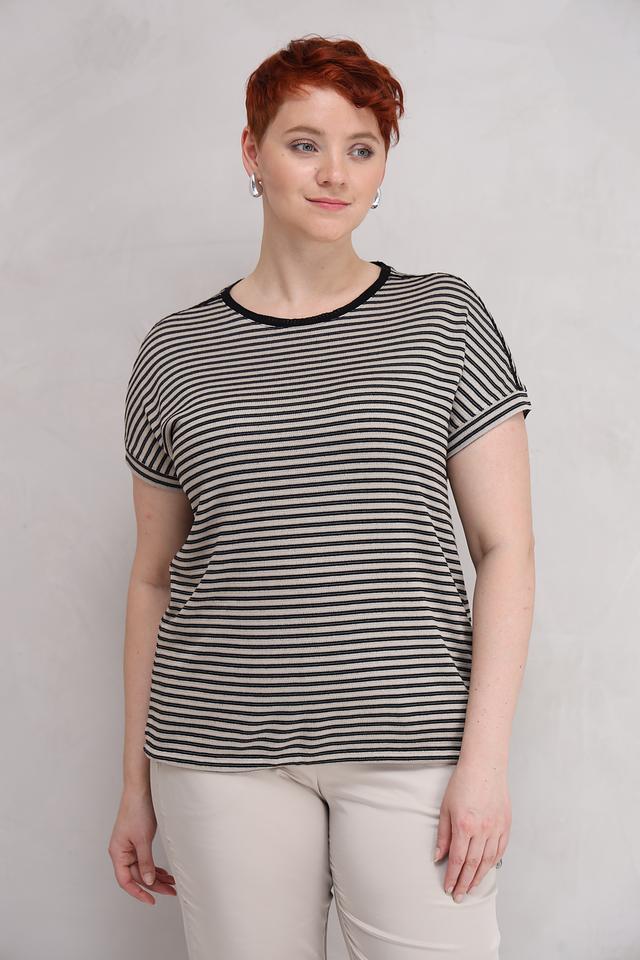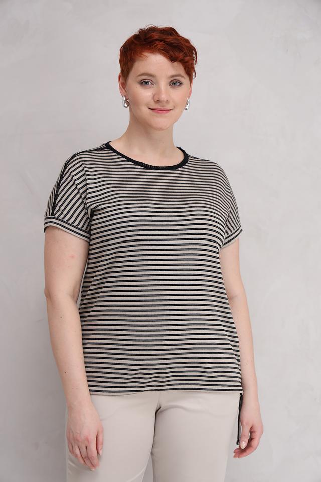 Женская футболка Lecomte чёрно-бежевого цвета с полоской – это стильная и удобная модель на каждый день. Футболка выполнена из мягкого и приятного к телу сочетания вискозы и полиэстера, обеспечивающего комфорт в носке. Состав: вискоза 58%, полиэстер 42%