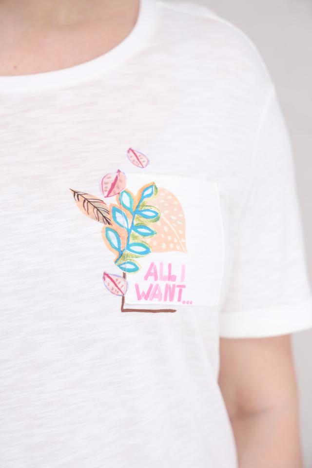 Эта стильная футболка от Lecomte станет отличным дополнением к вашему гардеробу. Выполнена в белом цвете и украшена ярким, красочным принтом с изображением листьев и надписью "ALL I WANT IS TO BE WITH YOU".